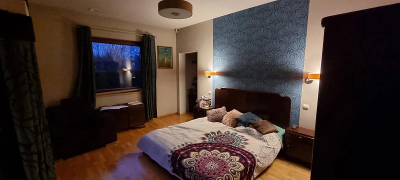 Marek i jego żona chcieli zacząć od zera. Łóżko drewniane, 180x200. Szafa na zamówienie — na całą ścianę, jak największa. Stoliki nocne. Telewizor. Lampy sufitowe i kinkiety.