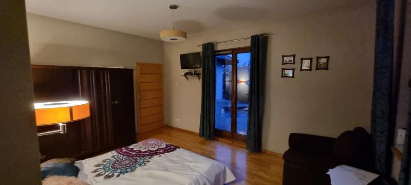 Pokój ma 18 metrów kwadratowych, okno tarasowe i wyjście na ogród — ale wyglądał na mniejszy niż jest. Ciemne meble i ciemne tkaniny pochłaniały światło, które wpadało z tarasu.Co wiemy z ankiety